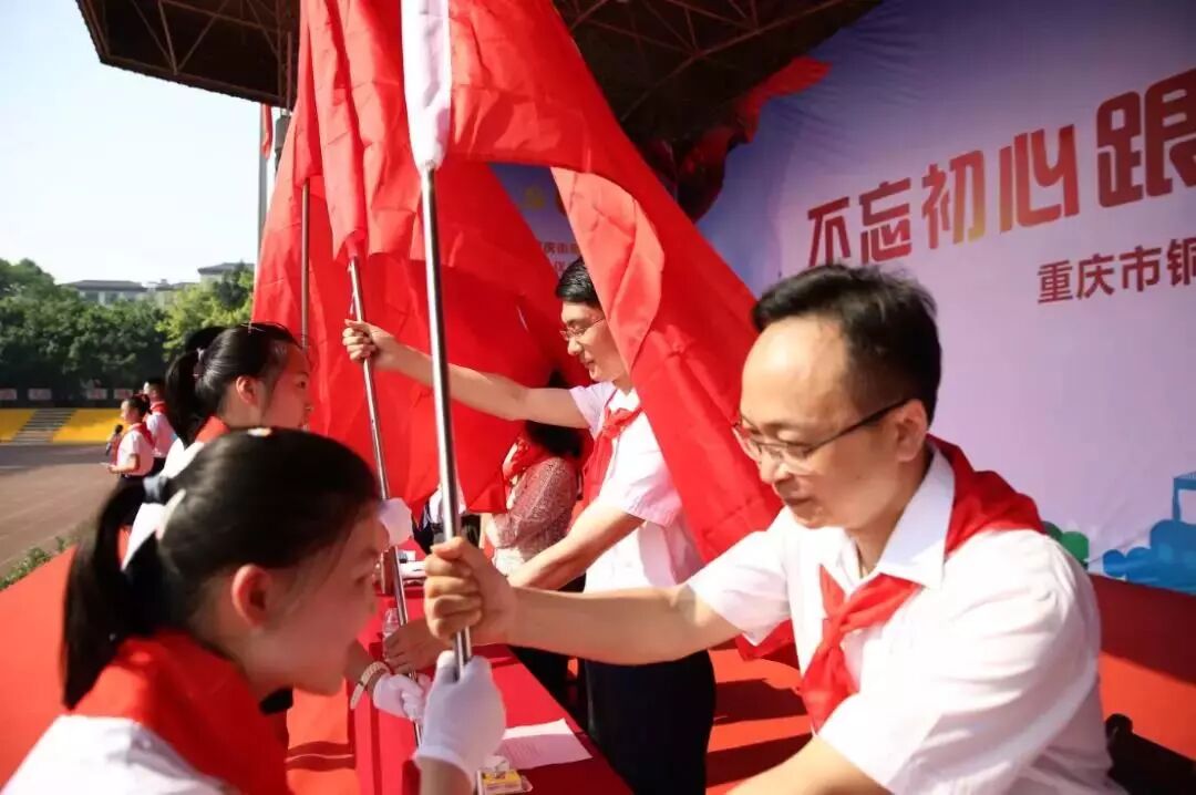 最后,在铜梁区少先队总辅导员逯丽平的带领下同学们举起右手庄严呼号:
